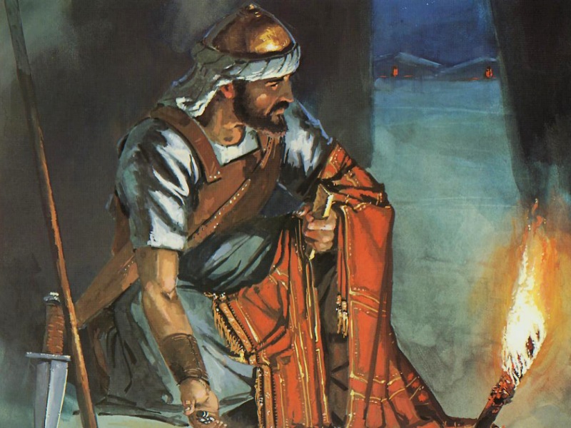 Thinking of this brings to mind the story of of Achan (Joshua 7:1-12, 19-26) When the children of Israel, led by Joshua, crossed over the Jordan River, there were thousands of them. They lived together as families, as we do, but each family lived in a tent instead of a house. All the families of one tribe camped together. When they marched, they rolled up their tents and carried them. When they stopped for the night they put up their tents. God had commanded them to destroy the entire city because it was so sinful. God had told Joshua, and Joshua had told the people just what they were to do. The Lord told Joshua that when the Israelite’s conquered Jericho they were to burn everything in the city that belonged to the people of Jericho except the silver, gold, brass, and iron. These they were to bring to the House of the Lord. Joshua had carefully instructed his soldiers, and every man knew that these were the orders. Achan was a soldier who disobeyed the orders and hid a beautiful garment, and some silver and gold in his tent. Achan felt sure no one else would find out about this.