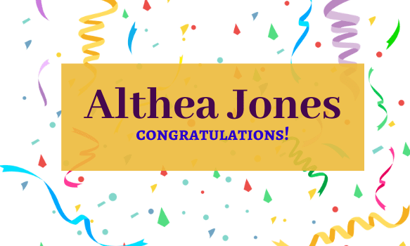 Althea will not only be receiving Jacqueline’s new book but as an added bonus, Jacqueline will be sending her a bag of lollipops to go with it! Congratulations Althea! – Althea Jones is also a blogger, woo-hoo!! You can visit her lovely blog – Momof3Kings. While there, catch up on one of her posts and leave her a comment, as well as a congratulation!!